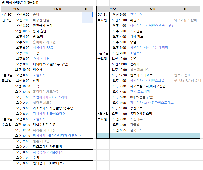 괌을 여행할 예정이라면, 일정 참고하시고 꿀팁까지 챙겨가세요! 😊